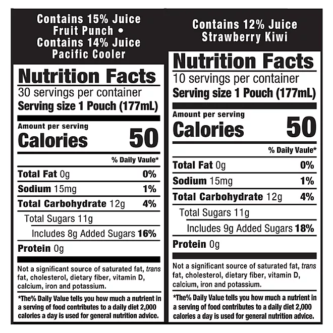 Three flavors: Fruit Punch, Strawberry Kiwi and Pacific Cooler Flavored Juice Drink Blend Variety Pack