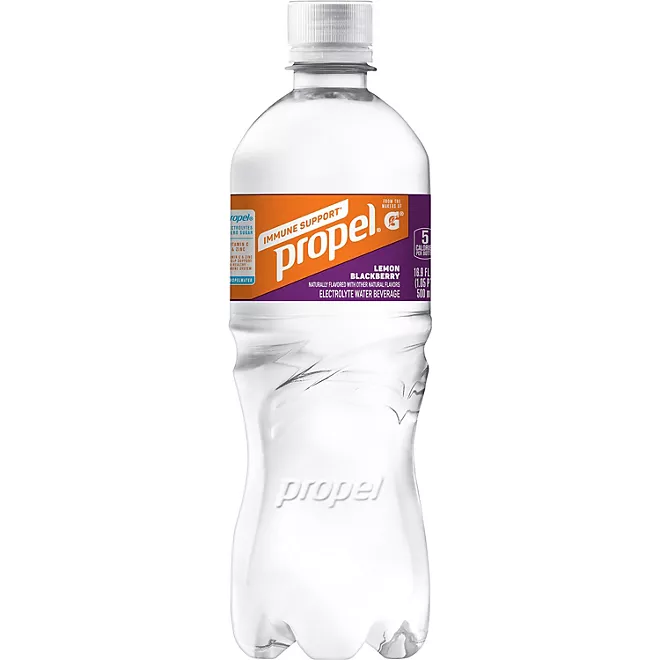 Includes (24) 16.9 oz bottles of Propel Immune Support with Vitamin C and Zinc: 8 bottles each of Lemon Blackberry, Orange Raspberry and Pineapple Peach flavors